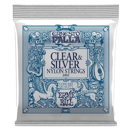 Ernie Ball Ernesto Palla concert quality classical guitar treble strings are made of black nylon monofilament Silver wound basses are made of silver-plated copper wrapped around a nylon multifilament core, providing a smooth, rich tone All Ernie Ball strings are precision manufactured to the highest standards and most exacting specs to assure consistency, optimum performance, and long life gauges: First 028, Second 032, Third 040, Fourth 030, Fifth 036, Sixth 042 – Medium tension