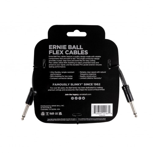 Ernie Ball Flex cables feature a quality design made with reliable components that are built to last. This single conductor design provides crystal, clear tone, and extra flex for easy coiling. Flex cables utilize 95% shielding to reject unwanted noise and preserve your signal, and the durable PVC jacket exterior ensures lasting performance.