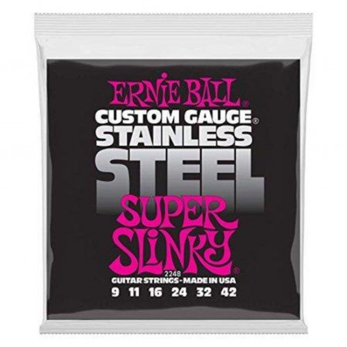 - Slightly heavier: Ernie Ball Super Slinky Stainless Steel (9-42)