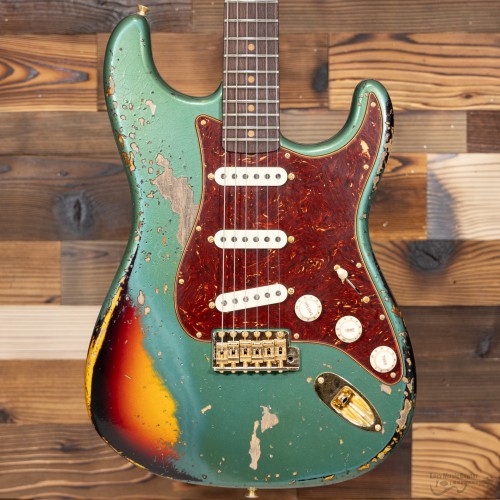 Fender 923-6053-042 Custom Shop (#CZ565438), 1962 LTD Strat, Gold Hardware, Heavy Relic, Aged Sherwood Green Metallic over 3-color Sunburst