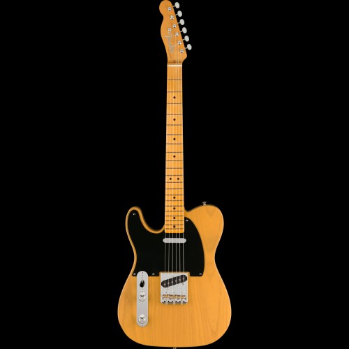 The American Vintage II 1951 Telecaster features an ash body finished in Butterscotch Blonde to capture the tone and look of the original. The substantial ‘51 “U”-shaped hard rock maple neck plays like a dream with a 7.25” radius fingerboard and vintage tall frets. Characteristic of production in 1951, 12th fret face-dot spacing is narrow and the sole Phillips-head fastener on the guitar is at the truss rod nut. The triple brass saddle bridge, single-line “Fender Deluxe” tuners and Pure Vintage ‘51 Telecaster pickups deliver classic twang and authentic Fender style.