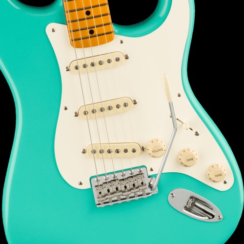Offered in three stunning nitrocellulose lacquer finishes – 2-Color Sunburst and Sea Foam Green over alder and Vintage Blonde over ash – the American Vintage II 1957 Stratocaster celebrates a true icon of Fender instrument design.