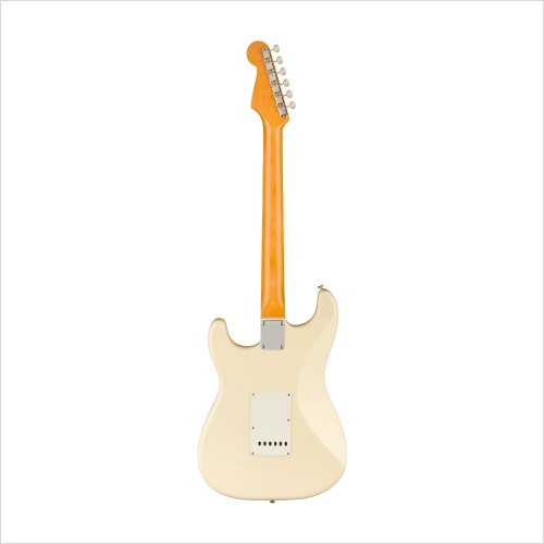 During the late ’50s and early ’60s, the popularity of Fender musical instruments flourished, and although the Fender assortment had expanded to include many great new instruments, the Stratocaster® reigned supreme. By 1961, the Stratocaster had taken on a more refined aesthetic, with a 3-Color Sunburst reformulated with a more vibrant red and bolder black edge, topped with a 3-ply pickguard accenting the Strat’s signature curves.