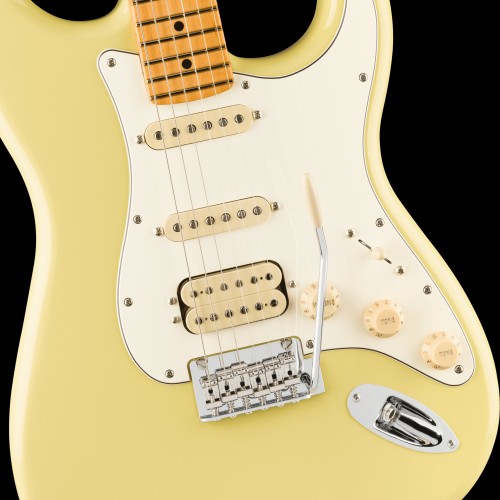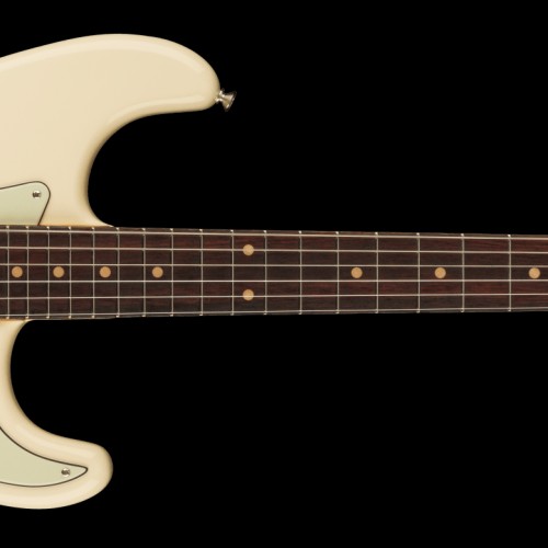 During the late ’50s and early ’60s, the popularity of Fender musical instruments flourished, and although the Fender assortment had expanded to include many great new instruments, the Stratocaster® reigned supreme. By 1961, the Stratocaster had taken on a more refined aesthetic, with a 3-Color Sunburst reformulated with a more vibrant red and bolder black edge, topped with a 3-ply pickguard accenting the Strat’s signature curves.