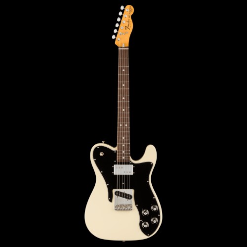 This Tele features a Wide Range humbucking pickup in the neck position and a Pure Vintage ’77 single-coil Tele® pickup in the bridge position. To create an authentic Wide-Range humbucking pickup, we resurrected CuNiFe magnets, which had been out of production since 1981, and are an essential element in recreating the sonics of the original. The American Vintage II 1977 Telecaster Custom plays like a dream with a ‘77 “C”-shape hard rock maple neck with a 7.25” radius maple or rosewood fingerboard and vintage tall frets. Other features include a Tele bridge with 6 slotted steel barrel saddles, “F” stamped tuners, a convenient “Bullet” style truss rod nut and a three-bolt neck plate with Micro-Tilt™ mechanism.