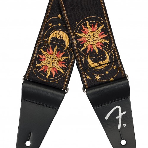 Bring out the bright, bold and beautiful colors of your guitar with the American Vintage II Sun Strap. Featuring a woven jacquard sun and moon design, this strap is fully adjustable strap and perfectly color matched to complement your favorite new Fender!