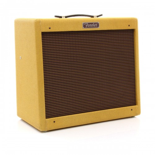 The Blues Jr. Lacquered Tweed takes Fender’s 15W gem and gives it the true vintage treatment with a lacquered tweed covering and a vintage-voiced 12″ Jensen speaker. Its golden tones are generated by an all-tube signal path using a pair of EL84 output tubes and 3 – 12AX7 preamp tubes. Add renowned Fender reverb, flexible controls, FAT switch for mid boost, and you’re in business. And just look at that chrome panel, that tweed finish with vintage-style brown and gold grille cloth, and those vintage pointer knobs!