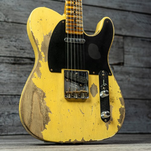 ’50s Fender Tele tribute with the Custom Shop hard-gigged relic treatment and build detail to match. Distinct ’54 “U” neck with crisp and rich ’51 Nocaster single coil handwound pickups. Stunning and lightweight Custom Shop Tele.