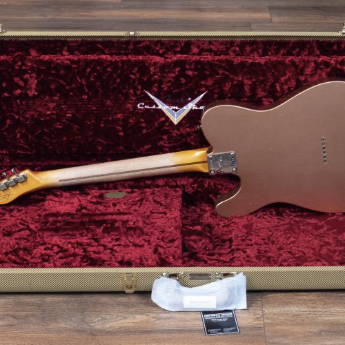 Introduced in 1955, the Telecaster, also known as the “White Guard” Tele®, featured a 1-ply white pickguard, transparent white blond finish, smooth barrel steel bridge saddles, staggered bridge pickup pole pieces and a chunky neck profile. It is an all-time classic model with such characteristics. The Custom Shop faithfully recreates the tone, playability, look, and feel of this quintessential model in three custom colours: Aged White Blonde, Wide-Fade 2-Colour Sunburst, and Faded Aged Copper.