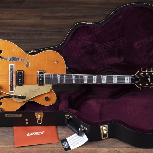The two-piece select ash body has a heavy-check nitrocellulose lacquer finish, while the one-piece riftsawn maple neck features a 54 “U” profile and a 9.5″-radius fingerboard with 21 narrow-tall frets. is equipped with The pickups are hand-wound ’55/’56 with a 3-way switch and Fat 50s Tele wiring for a clean, punchy tone. It also features a parchment pickguard, ’55 Tele bridge, smooth barrel steel saddles, vintage-style tuning machines, bone nut and disc string tree. Comes with deluxe hardshell case, strap and certificate of authenticity.