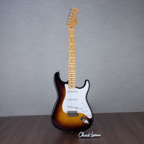 The Fender Custom Shop 70th Anniversary 1954 Stratocaster celebrates the legacy of one of the most iconic guitars in history. Built with meticulous attention to detail, this limited-edition Strat honors the original 1954 model, featuring period-accurate specs, from its ash body and “U”-shaped maple neck to the hand-wound pickups that capture the vintage Strat sound. Complete with a beautiful nitrocellulose lacquer finish, the 70th Anniversary Stratocaster offers players and collectors alike a faithful tribute to Fender’s pioneering spirit, combining classic design with modern Custom Shop craftsmanship.