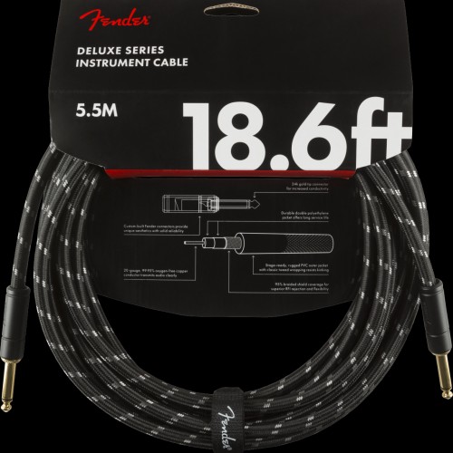 Fender Deluxe Series cables carry the highest quality materials and braided shielding to deliver flagship durability, conductance and transparency. Our top-of-the-line cables sport custom molded ends with strain relief under the housing—plus 24K gold-plated connectors that won’t tarnish or degrade your sound over time. These cables use a very quiet braided shielding that is engineered to maximize the purity of your tone, and they’re protected by a soft-woven yet rugged tweed jacket that provides ultimate protection with classic Fender style.