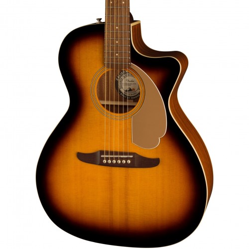 Crafted from all-laminated sapele, the comfortable mid-sized concert body of the Monterey Standard has a deep, rich wood grain and produces a satisfyingly warm and balanced tone well-suited for a variety of playing styles. The easy-to-play nato neck is designed with a slim “C”-shaped profile with rounded fingerboard edges for optimal comfort, a short 24.75″ scale length for low string tension, and a 6-in-line headstock for a distinctive look born from Fender’s 1970s-era electric guitar DNA. The Monterey Standard also has a narrow string spacing at the bridge, ideal for players with small hands or those seeking reduced picking-hand fatigue. Other notable details include a silky satin urethane finish, vintage-style tuning machines for smooth, accurate tuning, and a GraphTech® NuBone® nut and saddle for detailed harmonic character. Rounding out the feature list is a Fender® preamp system that allows faithful reproduction of the guitar’s natural sound when plugged into an amplifier or recording device, and includes a built-in tuner for convenient on-the-fly adjustment.