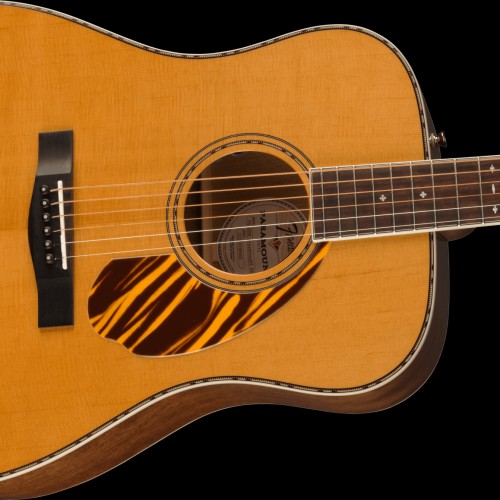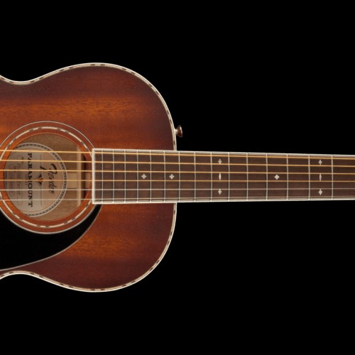 The Paramount PD-220E combines state-of-the-art craftsmanship with vintage-inspired appointments, delivering the best of both worlds. Built with the choice of a solid spruce or solid mahogany top paired with solid mahogany back and sides, the PD-220E features an offset X-bracing pattern that has been carefully refined to optimize resonance and tone. A brand-new Fender and Fishman®-designed Sonitone Plus pickup amplifies the full, balanced tone of the PD-220E’s dreadnought body shape, while the soundhole-mounted controls preserve the vintage aesthetics. Under the top, a body-sensing pickup enhances the soundboard’s vibrations which can then be blended with the undersaddle Sonicore pickup.