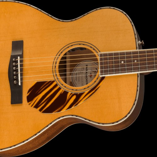The Paramount PO-220E combines state-of-the-art craftsmanship with vintage-inspired appointments, delivering the best of both worlds. Built with the choice of a solid spruce or solid mahogany top paired with solid mahogany back and sides, the PO-220E features an offset X-bracing pattern that has been carefully refined to optimize resonance and tone. A Fender and Fishman®-designed pickup amplifies the warm, mid-focused tone of the PO-220E’s newly designed orchestra body shape, while the soundhole-mounted controls preserve the vintage aesthetics. Under the top, a body-sensing pickup enhances the soundboard’s vibrations which can then be blended with the undersaddle Sonicore pickup.