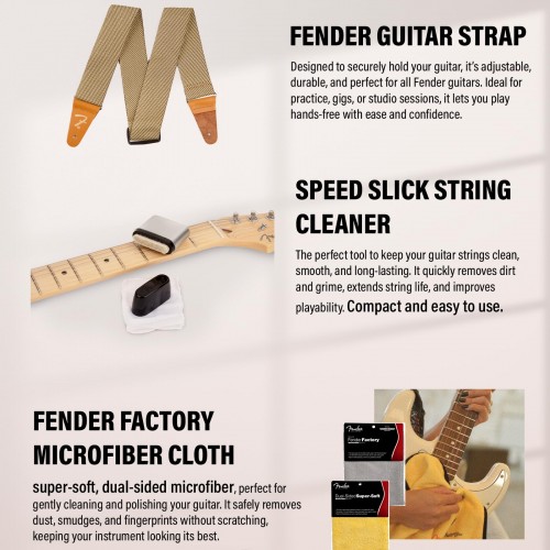 Fender Standard Stratocaster HSS – Black Bundle with Strap, Guitar Cleaning Kit and Austin Bazaar Instructional Video