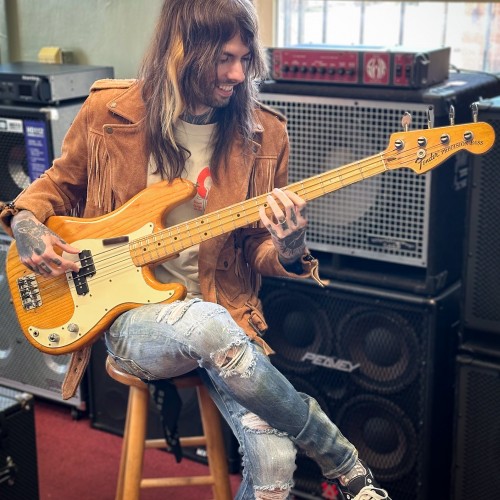 A rock ‘n’ roll classic, this ’73 Fender Stratocaster has a blonde finish, a 1-piece maple neck and a rosewood fingerboard. Equipped with 3 original single-coil pickups, tremolo bridge, “F” enclosed tuners and a bullet truss rod cover. Gigbag. Made in USA.