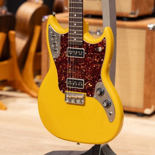 We spec’d this one out plain and simple: a beautifully aged Yellow Oxide finish gives this guitar a classic look when paired with the tortoiseshell pick guard. The TV Jones T-Armond pickups provide crystal clear highs, bellowing lows, and a tastefully controlled midrange. They perform really well both with and without a lot of gain. Some say they sound like tele pickups on steroids.