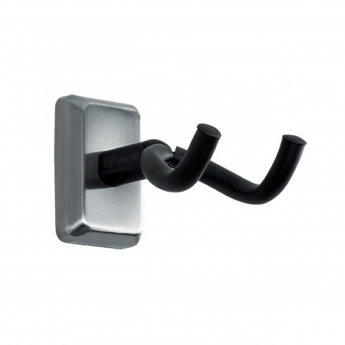A black foam wall pad is included with the mounting plate to prevent scratching or marring of the wall or item the hanger is mounted to. The sleek black stand-off provides just the right amount of clearance from the wall for angled or straight head-stocks while maintaining a low profile appearance. The sleek black stand-off provides just the right amount of clearance from the wall for angled or straight head-stocks while maintaining a low profile appearance.