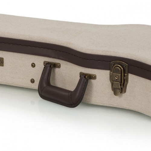 The Gator Journeyman Deluxe Wood Case for Les Paul Style Guitars (GW-JM LPS), offers traditional craftsmanship, modern engineering, and a distinct vintage style. Dressed up in pebble weave burlap, accented with espresso trim, and outfitted with antique brass hardware, its classic elegance is undeniable. Heavy-duty plywood panels create a sturdy outer shell while royal blue crushed velvet and thick foam padding cradle your Les Paul style guitar securely in place. A single interior storage compartment provides ample space for your favorite guitar strings, picks, and accessories. Keep your prized Les Paul style guitar safe and stylish with the Gator GW-JM LPS Deluxe Wood Case.
