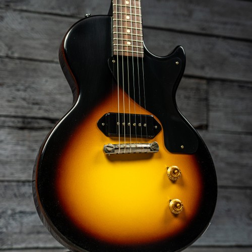 Classic ’50s sound and style with this Gibson Custom 1957 Les Paul Junior Single Cut Reissue VOS electric guitar. A faithful reproduction of the original model, complete with a single custom dog ear P-90 pickup and vintage style hardware.