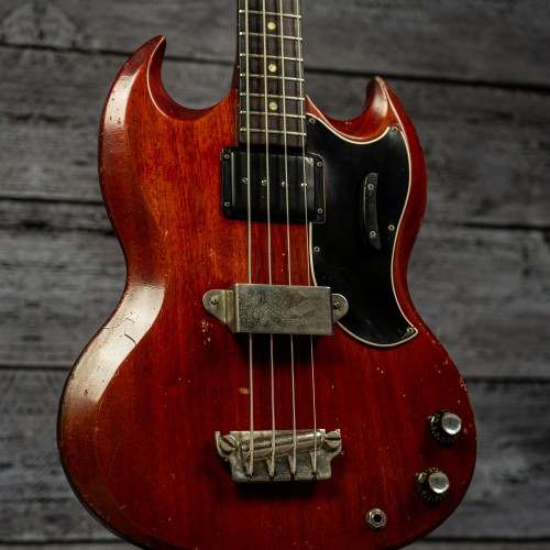 This 1962 Gibson EB-0 is a stunning bass with essential Gibson vintage character. Solid mahogany body and a one-piece mahogany neck with a 20-fret Brazilian rosewood fingerboard. It has a single humbucking pickup and a 30½-inch scale length. Known for its thick, clubby neck profile, this bass was made at Gibson’s Kalamazoo plant during a peak production ‘golden’ era.