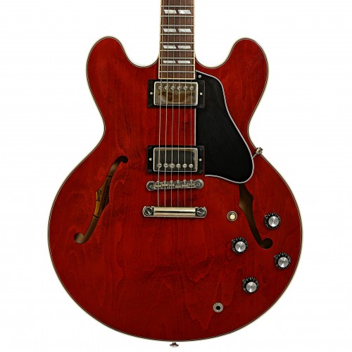 With loads of vintage charm, fat tones and inspired ease of play, this extremely attractive ES-345 features a Sixties Cherry finish on a double bound semi-hollow maple/poplar body, with a maple centerblock, and the bound rosewood fingerboard with split parallelogram inlays. Equipped with dual T-Type humbucking pickups, a T-O-M bridge, and vintage-style tuners. Original brown hard shell case. Made in the USA. On consignment.