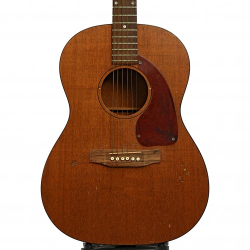 A classic in need of work, this ’60’s LG-0 is an all-mahogany guitar with a Brazilian rosewood fingerboard and bridge, tortoise plastic top binding and screw on pickguard. Shop project! Chipboard case. Made in Kalamazoo, USA.