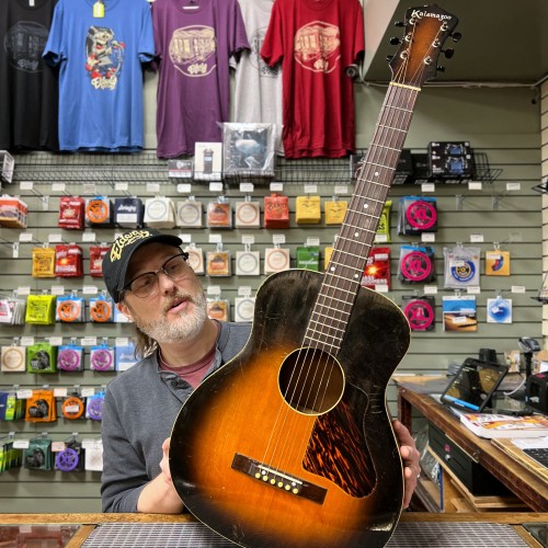 This 1968 Super 400 has an elegant design with a long list of premium features. It has an ~18″ hollowbody with a sunburst finish on a carved spruce top with maple back and sides. It offers excellent playability with a 3-piece neck, with a bound ebony fingerboard featuring a 25-1/4″ scale length and 1-9/16″ nut. Equipped with dual patent number sticker humbucking pickups, an ABR-1 wired T-O-M bridge, an engraved trapeze tailpiece, and Sealfast tuners. Includes a hard shell case. Made in Kalamazoo, USA. On consignment.