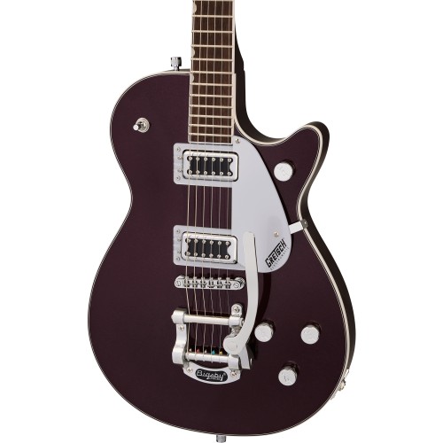 Semi-hollow body. A deluxe double cutaway loaded with features that give a fully expressive voice to your individual playing style. The classic Guild Starfire V is a semi-hollow beauty with a graceful 16 3/8″ thinline body and twin Guild LB-1 “Little Bucker” pickups that make it an outstanding choice with an authentic Guild voice perfect for rock, blues, roots and more. The Starfire V’s all-mahogany body features an arched top and back, with dual f holes, elegant ivory white body binding, black/white purfling and center-block construction. Other premium features include bound three-piece mahogany/maple/mahogany neck with vintage-style “soft U” profile, 22-fret rosewood fingerboard with 9 1/2″ radius and pearloid block inlays, three-way pickup selector switch, individual volume and tone controls for each pickup and master volume, Tune-O-Matic bridge with rosewood base, Guild vibrato tailpiece, Grover Sta-Tite tuning machines, nickel hardware and a gorgeous Cherry Red finish.