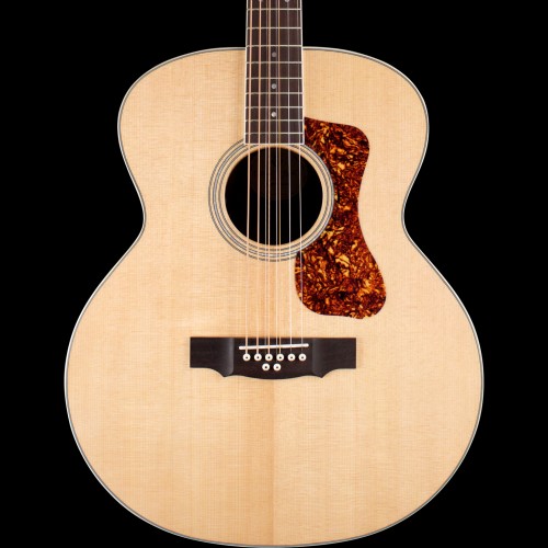 This Guild F-2512E features a traditional jumbo body, delivering a full 12-string sound and a retro aesthetic, all at an affordable price. Expertly crafted for bold projection and lively tone, this 12-string guitar offers a folksy sound with chorused textures. The slim C neck and 1-7/8″ nut width add familiarity for 6-string players and comfort for 12-string players. Part of the Westerly series, this guitar boasts vintage-inspired specifications and a red tortoiseshell pickguard.