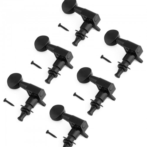 PRODUCT DESCRIPTION These tuners are quality tuners made of zinc alloy construction Compatible with steel string (Electric or Acoustic) guitar Set of 6pcs machine heads with mounting screws bushings and washers 10mm (13/32”)-diameter peg holes required Heavy duty internal gear & standard size Location: 6 right handed tuning pegs Color: Black Gear ratio: 1:14 Brand: Holmer PACKAGE INCLUDE6 x Right guitar machine heads 6 x ferrules 6 x screws NOTE Due to the difference between different monitors, the picture may not reflect the actual color of the item Due to manual measurement, there may be 1-2mm error in size