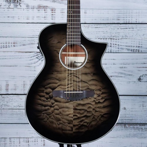 The Ibanez AAD77CE represents a bold evolution in acoustic guitar design, delivering a richer, brighter tone with exceptional dynamic range. Built with meticulous attention to both sound and playability, this instrument combines a powerful, reimagined acoustic voice with ergonomic comfort that keeps you playing longer. The Transparent Black Sunburst High Gloss finish adds visual sophistication to an instrument engineered to inspire players of all levels. Experience the next generation of acoustic performance.