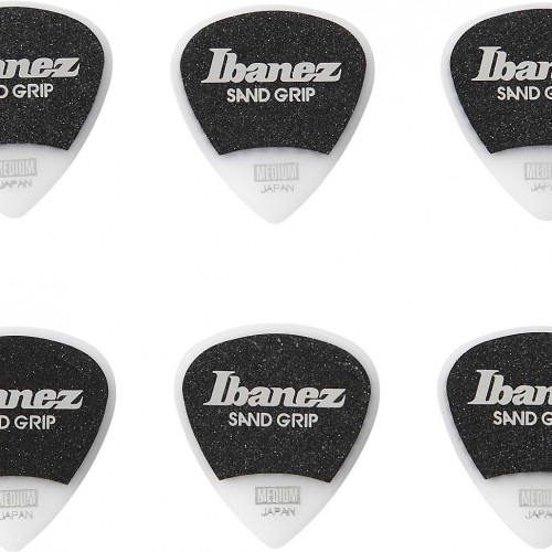 Ibanez Snad Grip PA16MSG-WH MEDIUM 0.8mm Pick x 6The Sand Grip Series is a series that uses a grip and sanding process on the surface of the pick.The GRIPWIZARD series picks feature a high grip.In order to increase grip strength, we have adopted a lattice pattern that is different from the previous models.In addition, the grip sand is mixed with glittery colored particles, and the design of the design has been further changed.Material: PolyacetalThickness: Medium (0.03 inches (0.8 mm)Shape: Short TeardropColor: WH (White)Sold as a set of 6.