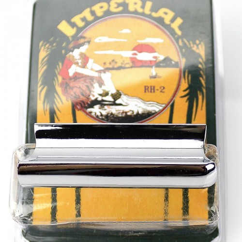 Imperial Valley Guitar Co. specializes in resonator guitars and acoustic Hawaiian guitars. The RH-2 is a new product from them that goes right along with their Hawaiian steel guitars. It is a tonebar or ”steel” typically used for playing lap steel, Dobro or Hawaiian steel guitars. The RH-2 uses the traditional Stevens type design with a finger groove on the top, but adds a cutaway on the front end with a rounded nose. The advantage of this is that with the rounded nose the player can tilt the steel bar up and be able to cleanly (and quickly) play single notes on any string. With a traditional square ended Stevens bar it is very difficult to play single notes anywhere except the very top or very bottom strings. The design is similar to some of the Shubb tonebars but has a more rounded nose and tighter radius bottom surface for a smoother vibrato.
