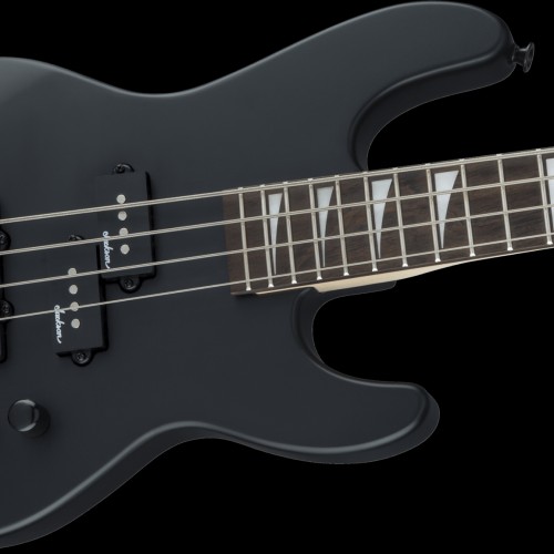 A Jackson P style neck pickup and Jackson J style bridge pickup power this 4-string bass, which also features a pair of volume knobs, single tone knob, hardtail bridge with black base plate and Jackson-branded tuners.