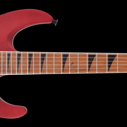 - Available in Black Stain or Red Stain with Jackson pointed 6-in-line black headstock and black hardware