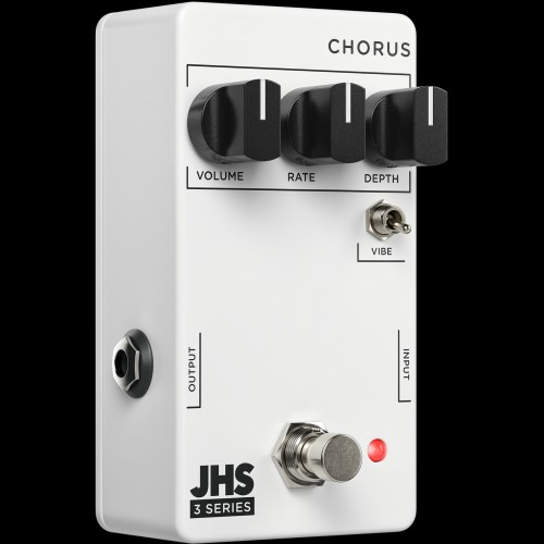 The JHS Pedals 3 Series Chorus offers classic chorus and vibrato modulation sounds, with straightforward controls and enough versatility for any style of music. The Rate and Depth knobs work together to deliver anything from subtle doubling to utterly seasick waves of modulation. The Vibe toggle removes the dry signal so that you will have a simple true pitch vibrato sound without the dry signal underneath. The JHS Pedals 3 Series Chorus runs on 9V DC Negative Center power and consumes 70mA.