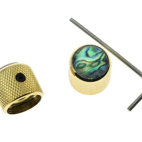 KAISH Gold Set of 2 Abalone Top Guitar Knobs Dome Knobs Bass Knob with Set Screw for Tele/Telecaster