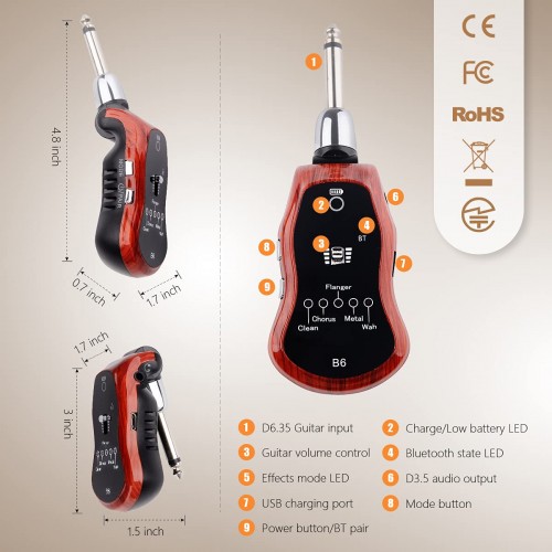 KITHOUSE B6 Guitar Headphone Amp Mini Plug Guitar Amplifier Bluetooth Receiver Rechargeable for Electric Travel Pocket Guitar Wi