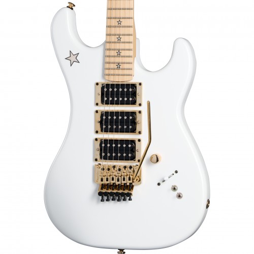 The Kramer Jersey Star is designed for players who want more – more pickups, more speed, and more in-your-face Kramer attitude! Part of Kramer’s Original Collection, the Jersey Star was first released in the 1980s and, over the years, has been one of Kramer’s most popular models. This updated version features gold hardware, a three-piece maple neck with a satin finish, an elliptical C profile for speed and comfort, and a 25.5” scale length. The maple fretboard sports 22 jumbo frets and laser-cut mother-of-pearl star inlays. The alder body also features a mother-of-pearl star inlay. It packs a trio of Kramer USA Neptune humbucker™ pickups paired with a master volume control, a five-way pickup selector switch, and individual coil tap mini switches for the bridge and middle pickups. The Kramer “pointy” headstock also has a mother-of-pearl star inlay, along with a Floyd Rose® R2 locking nut that, along with the Floyd Rose 1000 Series tremolo, keeps everything solidly in tune, regardless of how wild you get with the wiggle stick acrobatics. A premium gig bag keeps this Star safe and secure, no matter where the road may take you.
