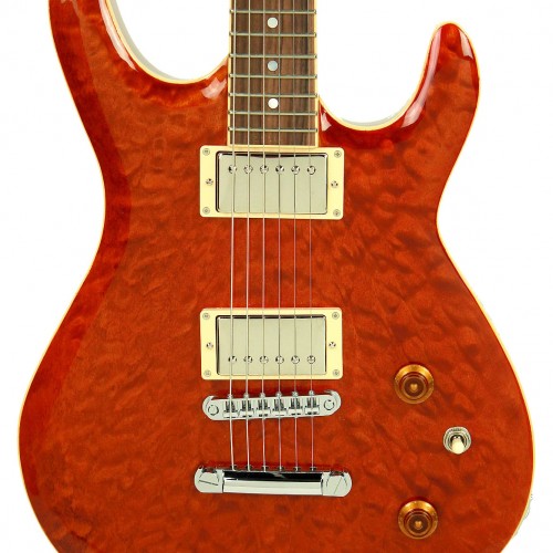 Kurt Wilson makes some great guitars and this is his standard model. It features a beautifully carved, Figured Sapele Top on a Mahogany back. The Seymour Duncan Alnico II pickups have plenty of punch and power but can back off and purr with sweetness. The medium thin neck carve is comfortable and fits well in the medium and smaller sized hand. Kurt’s Frets are well dressed which allows the intonation to be spot on. Kurt delivers masterbuilt quality instruments at about a third of the cost.