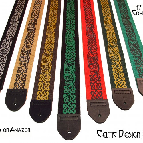 comfortable 2 cotton guitar strap features new high tech super strong synthetic leather ends and celtic Design good for both Acoustic and Electric guitars Fully Adjustable, acoustic tie included PLEASE NOTE graphic Designs are applied using special high quality textile inks that are fused to the strap fabric under high heat and pressure The designs are NOT WOVEN