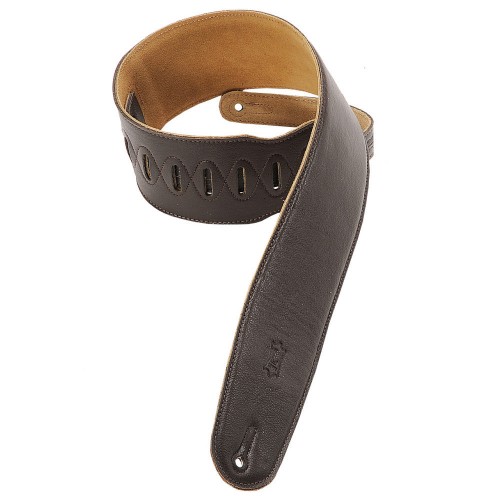 - Levy’s 3 1/2″ Wide Brown Top Grain Leather Bass Guitar Strap With Natural Back.