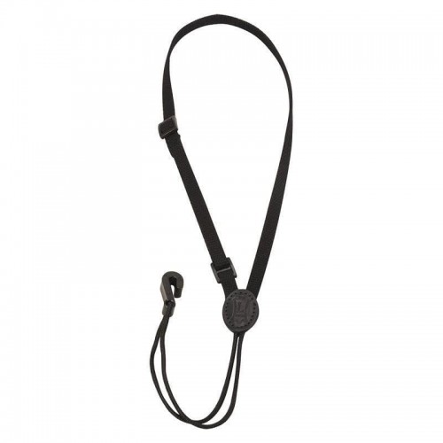 8″ cotton webbing ukulele strap with plastic sound-hole hook and tri-glide adjustment. Adjustable to 26″. Available in black (BLK) only.