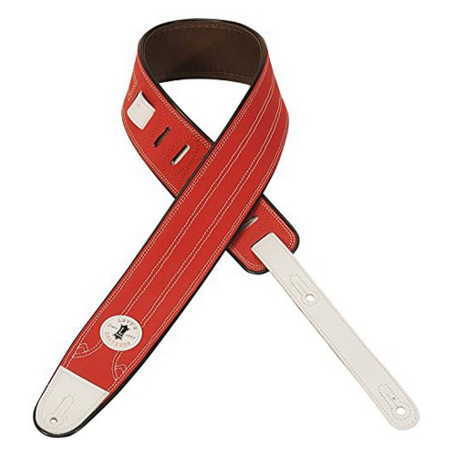 2 1/2″ canvas guitar strap with decorative stiching and black piping.