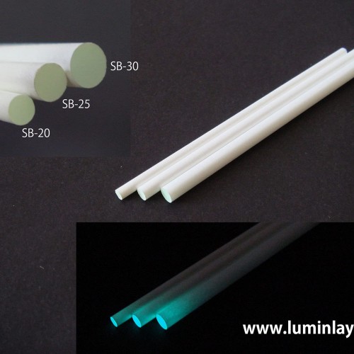 Luminlay materials are made of highly mixed high quality glow in the dark materials and high clear PMMA plastics. The outside is painted white so as not to lose the glow. SB series Glow BLUE long time glow type SG series Glow GREEN strong glow type General Q & A Q:How long will the Luminlay continue emitting light ? A:If you charge a Luminlay dot just for several seconds, you can have enough emission of light for about 20 minutes. The emission will be weaker as time passes, but, when in a really dark room, you can see that the Lumilay dots continue to be luminous all night long. Actually, on a stage, the darkness will not continue so long, and when the stage is lighted, Luminlay can be charged also by the stage lights. The fact that many professional guitar/bass players love using Luminlay proves the effectiveness. Q:How long and how many times can Luminlay be effective? A:Once Luminlay is installed, you can use it semi-permanently. Q:What are the characteristics of blue and green A:green is brighter at the beginning, but blue is better in persistence. Anyway, you can obtain enough brightness from both, and you can choose the color as you like.