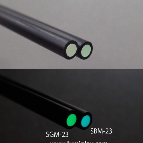 Products with Luminlay inserted in Black pipe The pipe material is hard so the sanding finish will be beautiful These products fit to maple or light colored wood fingerboards SBM series glow BLUE long time glow type SgM series glow gREEN strong glow type Luminlay materials are made of highly mixed high quality glow in the dark materials and high clear PMMA plastics The outside is painted white so as not to lose the glow SB series glow BLUE long time glow type Sg series glow gREEN strong glow type general Q & A Q:How long will the Luminlay continue emitting light A:If you charge a Luminlay dot just for several seconds, you can have enough emission of light for about 20 minutes The emission will be weaker as time passes, but, when in a really dark room, you can see that the Lumilay dots continue to be luminous all night long Actually, on a stage, the darkness will not continue so long, and when the stage is lighted, Luminlay can be charged also by the stage lights The fact that many professional guitarbass players love using Luminlay proves the effectiveness Q:How long and how many times can Luminlay be effective A:Once Luminlay is installed, you can use it semi-permanently Q:What are the characteristics of AblueA and AgreenA A:AgreenA is brighter at the beginning, but AblueA is better in persistence Anyway, you can obtain enough brightness from both, and you can choose the color as you like