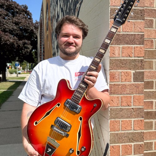 This attractive lefty 0-18 tenor guitar features a rich custom 1935 sunburst finish on a spruce top, with mahogany back and sides, tortoise binding and pickguard, and rosewood fingerboard, bridge and overlay. Original hard shell case. Made in USA.