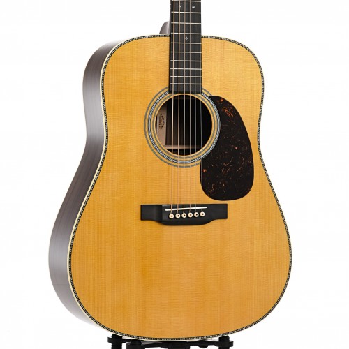 This custom HD-28 features a thin-sanded Sitka spruce top and Golden Era style scalloped braces with forward shifted X-brace for excellent tone. Back is beautiful Wild Grain Indian rosewood. Antique White binding, herringbone top trim, and aging toner on top complete the traditional look.